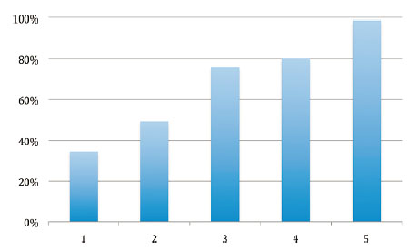 Le fluor étant l’atome le plus électronégatif, les molécules fluorées forment en général les GES les plus « efficaces ». Le fluor, et à un degré moindre le chlore, présentent le désavantage d’avoir des vibrations d’élongation C−F et C−Cl qui sont non seulement intenses, mais qui tombent en plus dans la fenêtre atmosphérique IR, ce qui n’est pas le cas pour la vibration d’élongation C−H. La figure ci-dessous montre que le pourcentage de bandes d’absorption d’une molécule augmente quand le nombre d’atomes de fluor augmente :